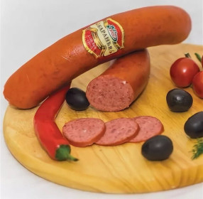 Классический полукопчёный продукт с ароматом пряностей и средней остроты. Золотистый цвет продукта п