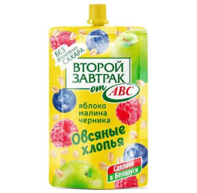 ABC Второй завтрак / Пюре фруктовое яблоко малина черника без сахара с овсяными хлопьями